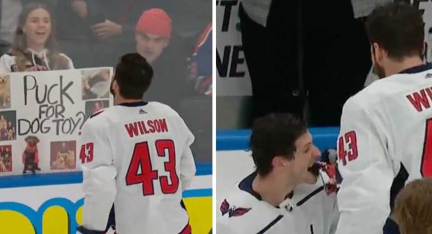 There was a consequential trade made between a Capitals fan and Tom Wilson ahead of Washington’s game against Edmonton, Wednesday. A fan held up a sign that asked Wilson if he would trade a warmup puck for a dog toy she bought into Rogers Place. The toy was for Halle Wilson, Tom’s dog. Tom made … Continue reading Tom Wilson trades warmup puck for dog toy… which he proceeds to give to Nic Dowd